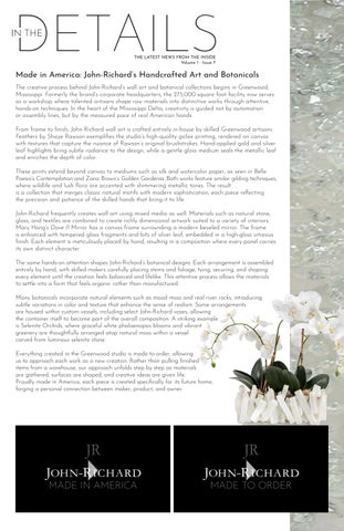 The John-Richard design team transforms global inspirations into breathtaking collections. Distinctive furniture, artisan-crafted accessories, unique lighting, mirrors, wall art and botanicals that make powerful style statements. Our relationships with award-winning designers and world renowned artists have grown so that our products are the perfect fusion of innovation, craftsmanship and groundbreaking design. These elements, apparent in all John-Richard collections, have made us a single resource for luxury home furnishings.