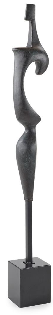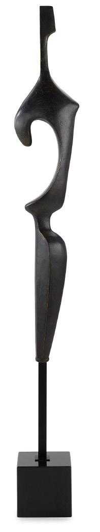 Modernist Silhouette Sculpture I (JRA-16384), Modernist Silhouette Sculpture II (JRA-16385): Abstract geometry defines this tapered composite sculpture, blending angular dimensions with fluid curves. The piece stands on a black marble base with an iron support rod for a monochromatic look –59.5" H x 8" W x 6.5" D Sculpture I / 56" H x 8.5" W x 7" D Sculpture II.