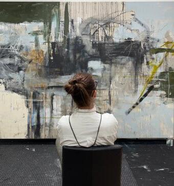 Her visual language is rooted in nature, both in palette and philosophy. Drawing from landscapes she has experienced firsthand, from the deserts of New Mexico to Zion National Park, Ferrari builds her work from earth-driven tones such as umbers, soft greens, and muted blues. Influenced by biophilic design and her study of Josef Albers, she layers paint to create shifting interactions of color, producing surfaces that evolve with light and context while maintaining a quiet sense of balance and harmony.