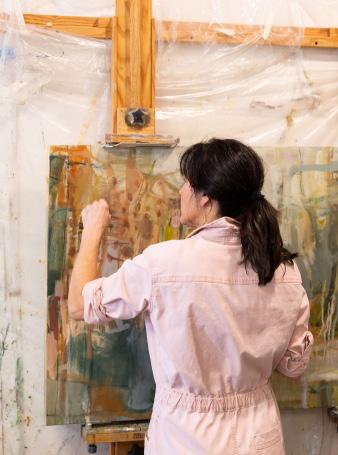 “To me, the most exciting thing about her work is the depth that she paints in,” Benson-Cobb said. “She does all of these layers with just this range of color. But if you start just shifting the color a little bit, you have a totally different painting.” The result is introspective, richly layered pieces that invite viewers to discover subtle gestures and unexpected details throughout.