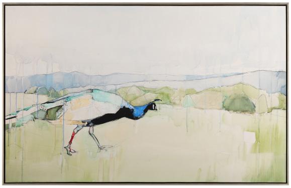 Bolton lets her paintings evolve organically, sometimes creating what she calls a “chaotic casserole” before refining the composition through an ebb-and-flow process of adding, covering, and revealing layers.