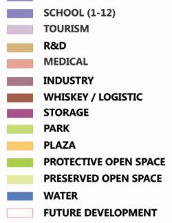 The location of educational facilities is a central objective in the plan, and the introduction of a University within the New Town is critical to provide a venue for research and technology development that not only support the existing industries of coal and whiskey, but also promote new business enterprises. This university campus is planned as an anchor of the town at its western edge and will be closely associated with the CBD by the introduction of a research center as a bridge between town and education.