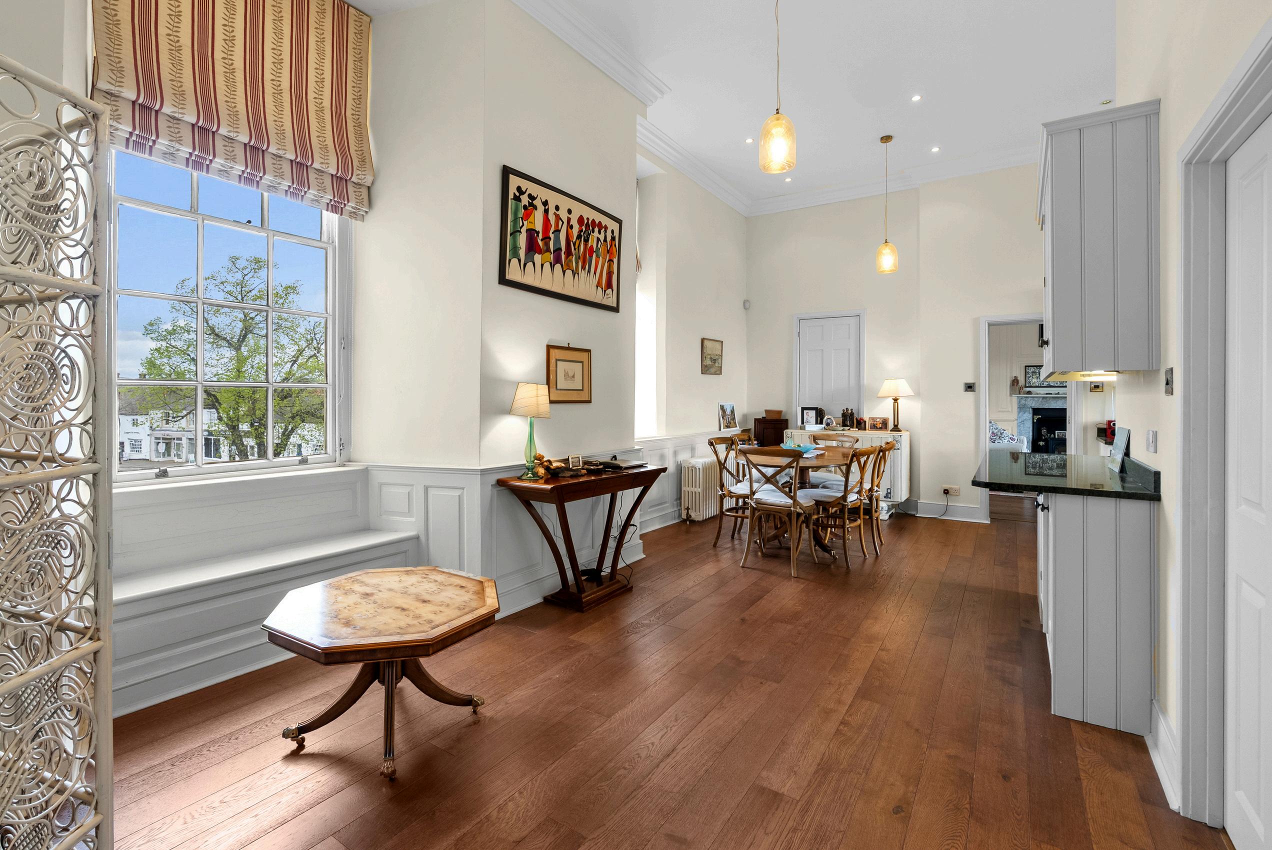 This remarkable two bedroom apartment offers exceptionally spacious accommodation with impressive ceiling heights, spanning the full depth of this iconic building Large sash windows flood the interiors with natural light, enhancing the elegant proportions and creating a wonderful sense of volume throughout. Every room reflects the quality and stature of the building itself, resulting in a home of uncommon presence and sophistication