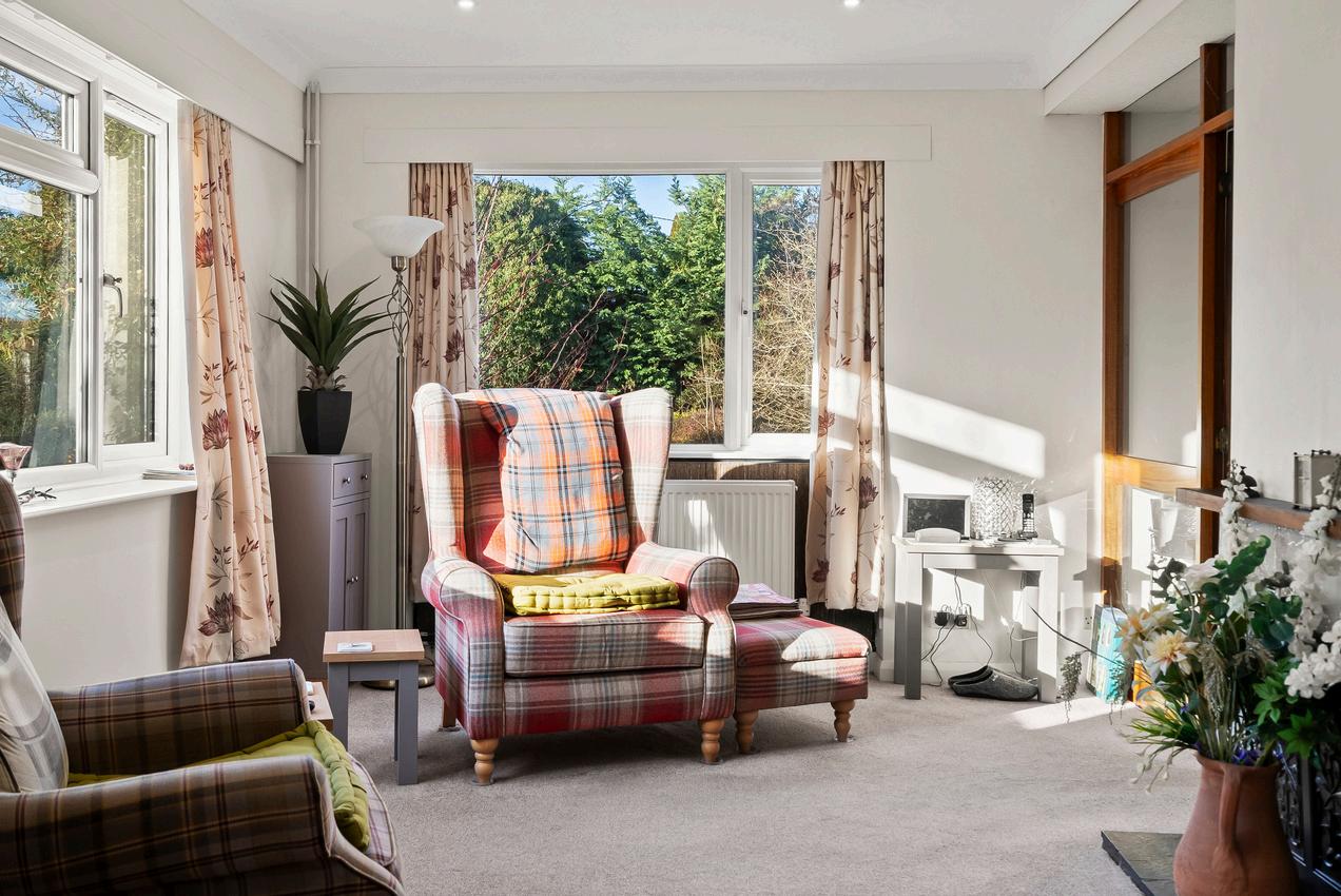 The accommodation is both comfortable and inviting, with an entrance hall opening into a cosy sitting room centred around an open fireplace. Dual-aspect windows draw in natural light throughout the day, creating a warm and welcoming space to relax, entertain or simply enjoy the changing seasons outside. The kitchen/ diner is thoughtfully arranged with a generous range of modern fitted units, integrated cooking appliances and a well-designed breakfast bar, making it a practical yet sociable hub of the home.