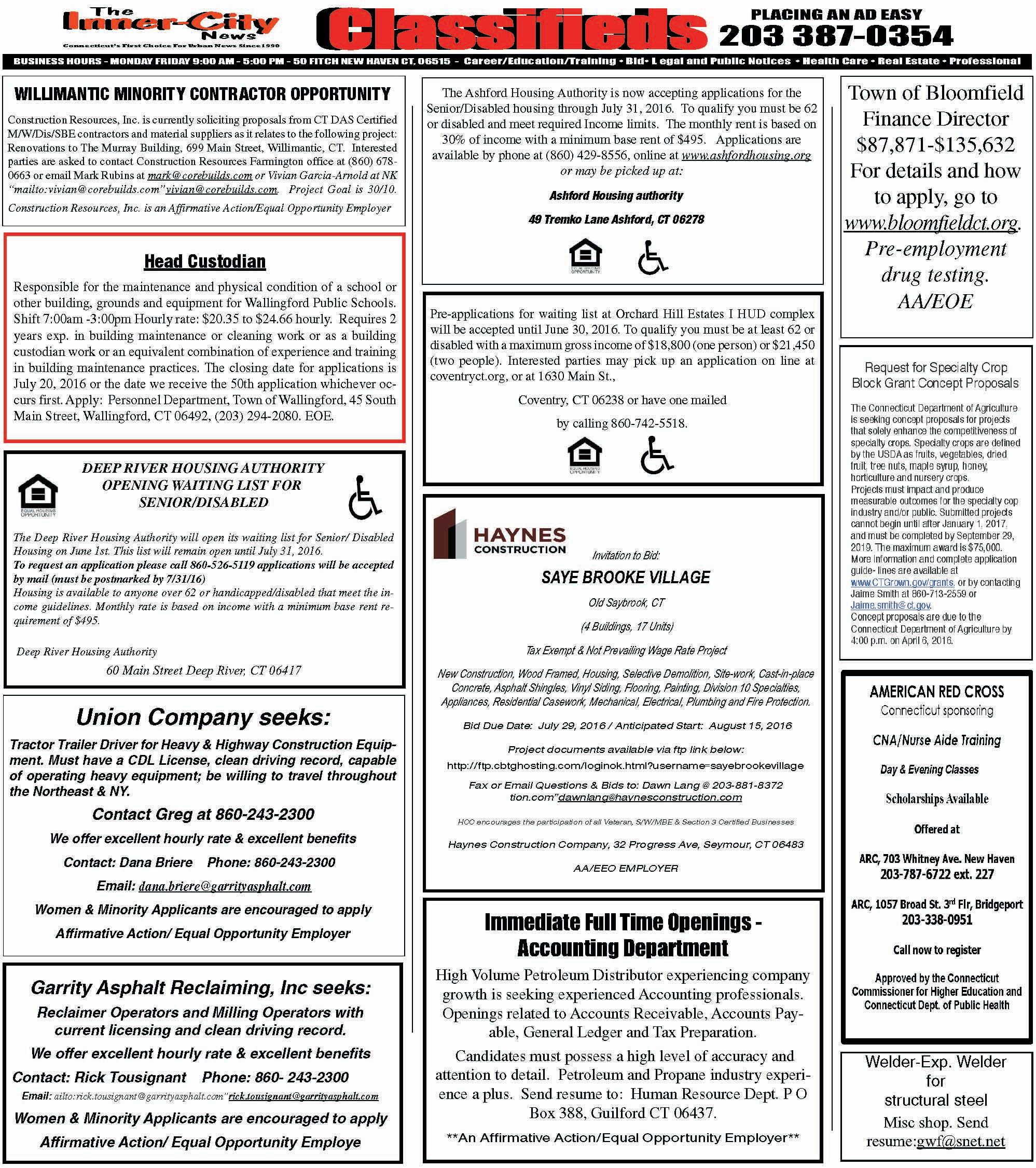 The Inner-City Newspaper is published weekly by Penfield Communications, Inc. from offices located at 50 Fitch Street, 2nd Floor, New Haven, CT 06515. 203-3870354 phone; 203-387-2684 fax. Subscriptions:$260 per year (does not include sales tax for the in State subscriptions). Send name, address, zip code with payment. Postmaster, send address changes to 50 Fitch Street, New Haven, CT 06515. Display ad deadline Friday prior to insertion date at 5:00pm Advertisers are responsible for checking ads for error in publication. Penfield Communications, Inc d.b.a., “The Inner-City Newspaper” , shall not be liable for failure to publish an ad or for typographical errors or errors in publication, except to the extent of the cost of the space in which actual error appeared in the first insertion. The Publisher reserves the right to refuse advertising for any reason and to alter advertising copy or graphics deemed unacceptable for publication. The entire contents of The Inner-City Newspaper are copyright 2012, Penfield Communications, Inc. and no portion may be reproduced by any means without the written permission of the publisher. 10