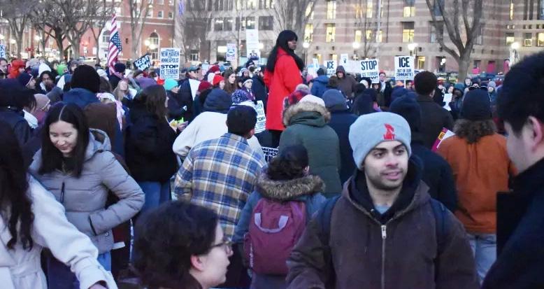 Protesters braved the cold to show support for residents of Minneapolis, where Immigration and Customs Enforcement (ICE) agents have shot and killed a civilian, dragged people out of their homes, imprisoned young children to send them halfway across the country to detention centers, and more — all as part of an escalation of immigration enforcement in the city this month.