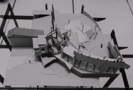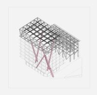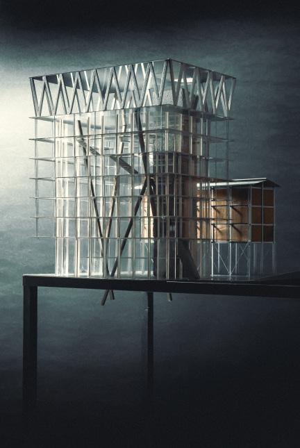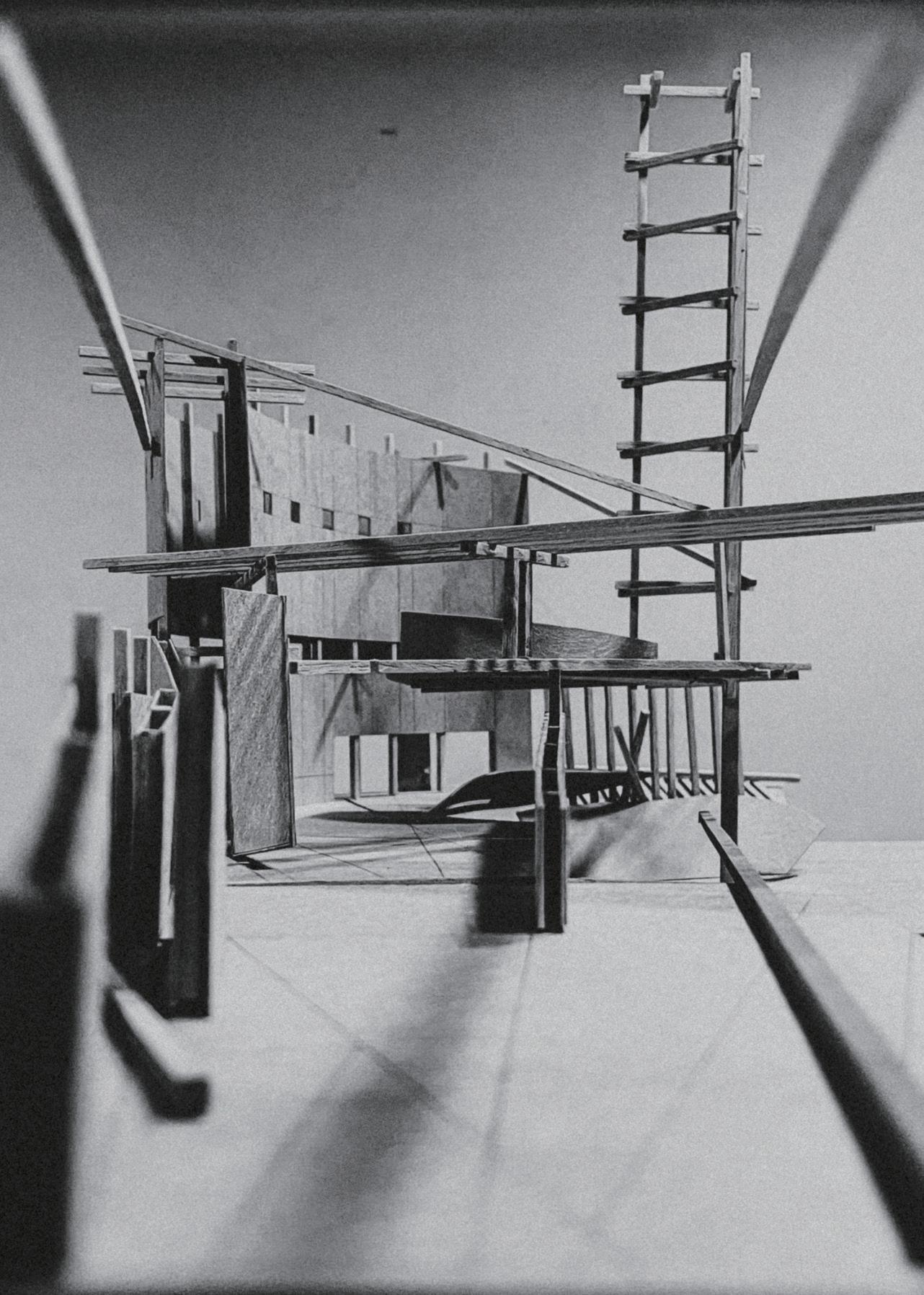 The structural model explores renewal within an existing concrete framework. A minimal insertion of steel columns reconfigures the fragmented structure, challenging architectural wholeness as an ontological premise while enabling spatial liberation.