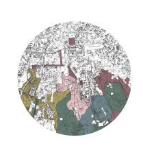 Dematerialized streets envelop the clock tower at the end of the axis, where the passage of time becomes imperceptible and spatial information is compressed into a single plane.