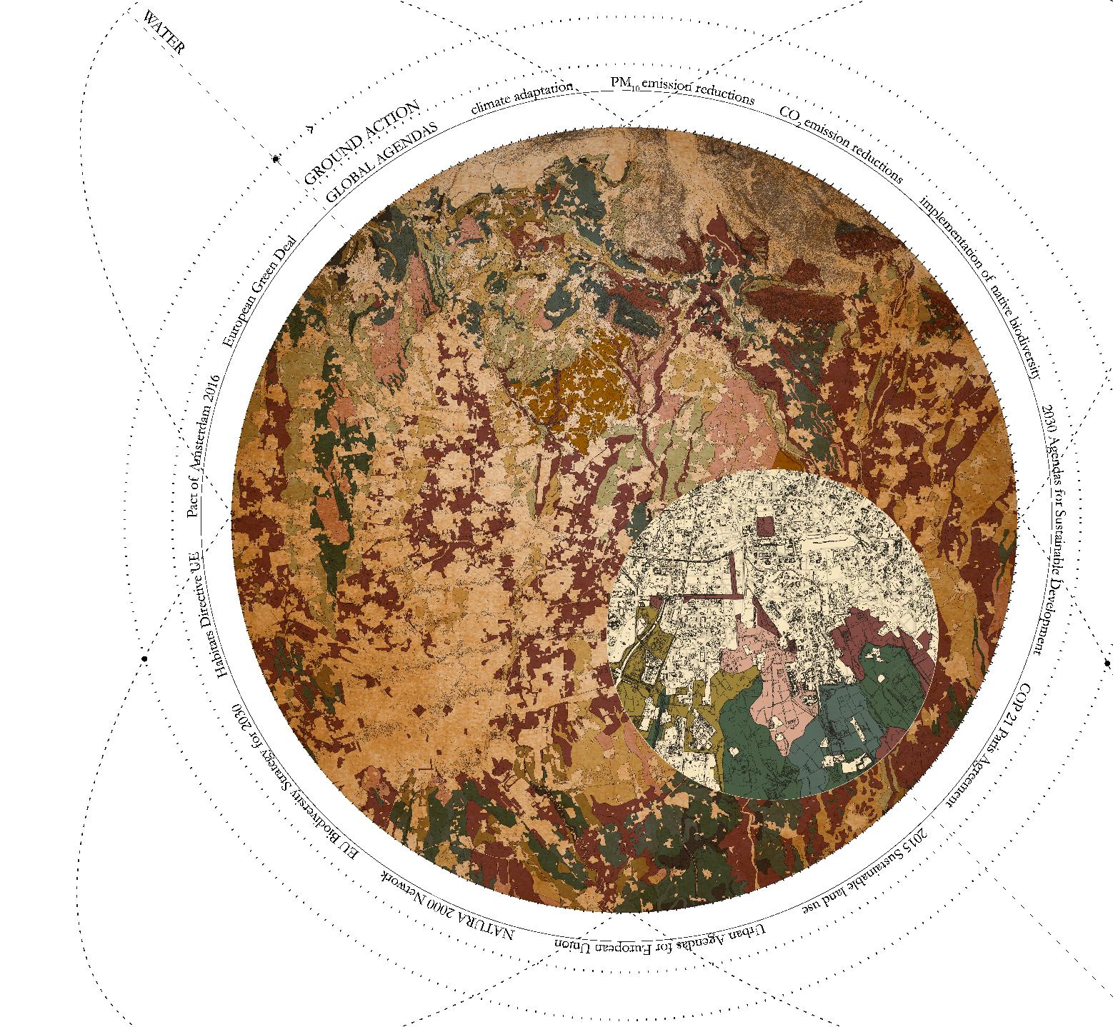 Inspired by futurist painting—its fascination with movement, fields, and the continuous transformation of form—this project begins with a mapping of lithology and ecological information, treating the epigenetic landscape as a field of latent possibilities rather than a fixed terrain. The landart that follows visualizes a suspended moment within this field: a movement between the many forms the landscape could become, generated through variations in rock hardness, density, and water absorption. Like Boccioni’s topological sculptures—where the underlying structure remains constant while the form continuously evolves— these drawings retain their ecological “properties” even as the landscape shifts through time. Rather than predicting geological behavior, the work uses ecological data as a conceptual engine to explore becoming, transformation, and the dynamic potentials embedded in the site north of Milan.