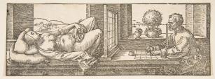 In Dürer’s perspective machine, the obelisk used to locate the height of the eye is, in this drawing, transformed into a metaphor—a viewpoint where perception and events occur.