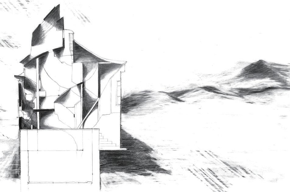 through material-driven constraints rather than predetermined formal intent. While the upper portion provides necessary enclosure and shelter, the lower portion remains open to encourage natural airflow and maintain clear visibility across the site. The configuration is further calibrated to prevailing wind patterns and solar angles, ensuring that the structure responds effectively to environmental forces while remaining materially economical and constructionfriendly.