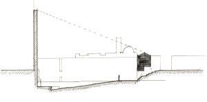 movement a long multiple spatial axes allows visitors to reexperience the suppressed monumentality of the old stage.
