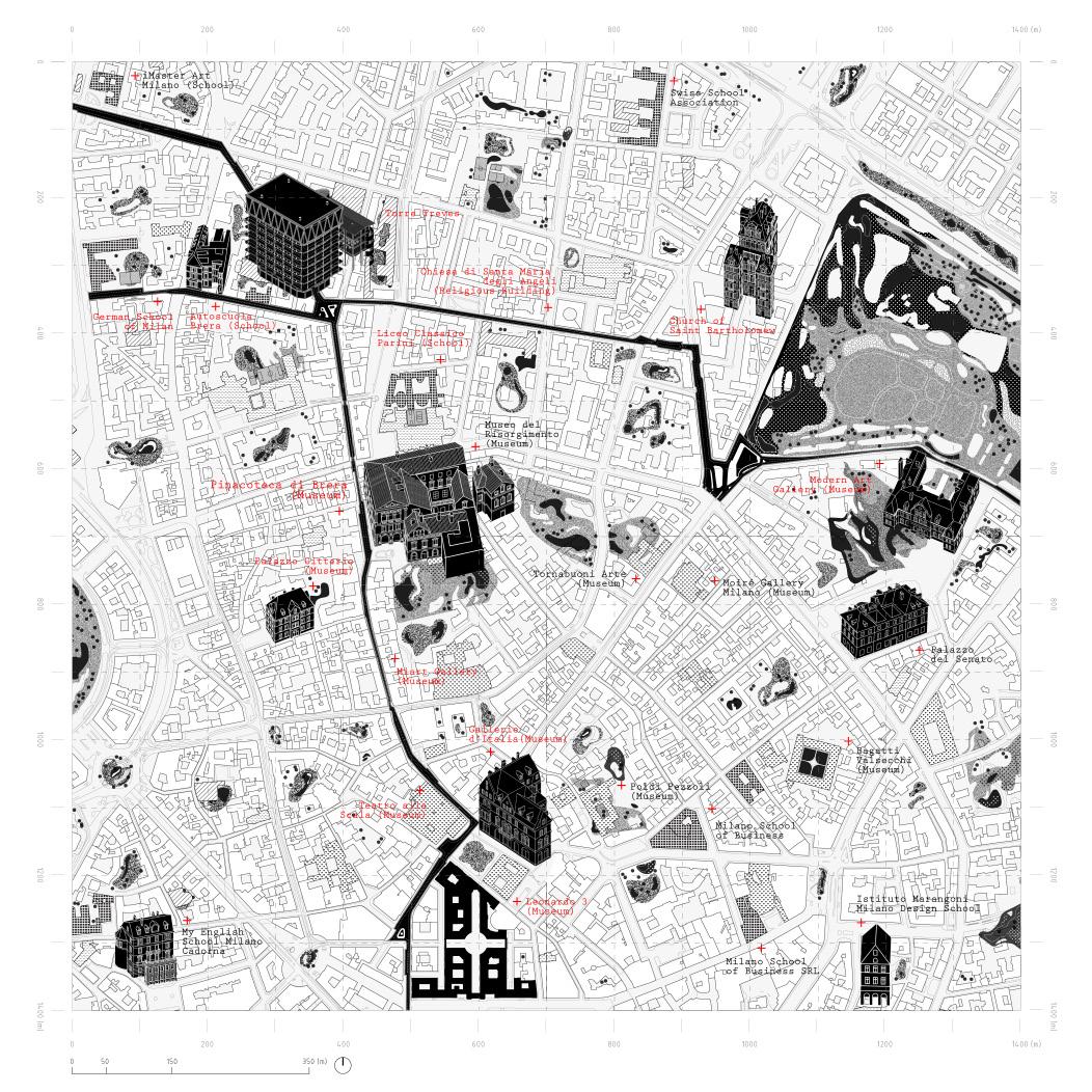 The map illustrates how the site is embedded within a dense network of art institutions and educational facilities , including the Brera Art Gallery and the Brera Academy of Fine Arts.