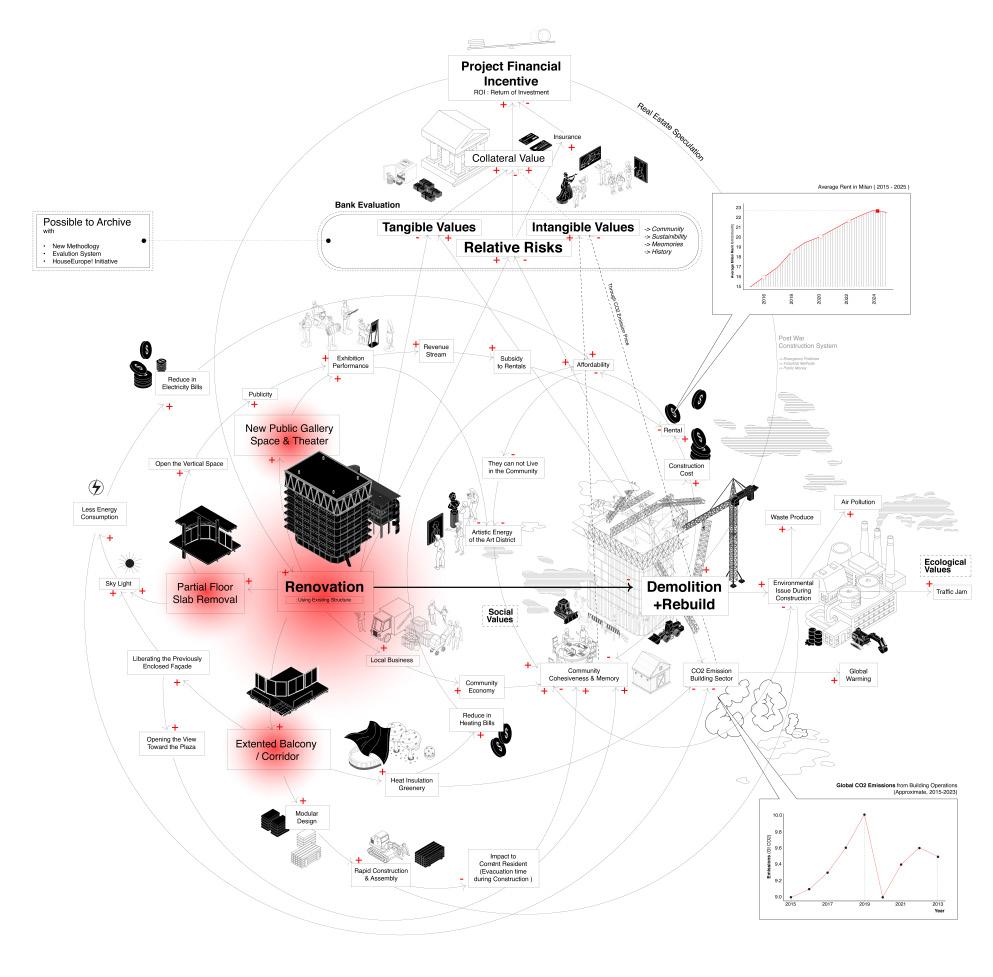 -Renovation of Torre Treves in Collaboration with HouseEurope! : ontological agency between new and existing structures within the systemic logics of the built environment