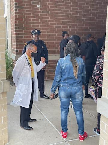On Saturday, September 17, the 100 Men of Greater Cleveland, Inc. (BMOGC, Inc.) participated in the grand reopening of the Cleveland Clinic Langston Hughes Health & Education Center, located at 2390 East 79th Street in Cleveland, Ohio. The center has had some renovation work to create office and break areas on the lower and second floors, including reconfiguring the waiting area. They created a new Exam Room and MA space, converted an office into an exam room, and made general renovations throughout the building. Health & Wellness is part of our Four For The Future Programming, so the 100 had to be present and visible in the community. Being at the re-opening allowed us to recruit mentees and mentors and spread the word about our upcoming gala on December 10, 2022, and the InterContinental Hotel. The 100’s health and wellness goals are to raise awareness, provide access to health care and give health information that will ultimately promote behavior change resulting in a healthier lifestyle.