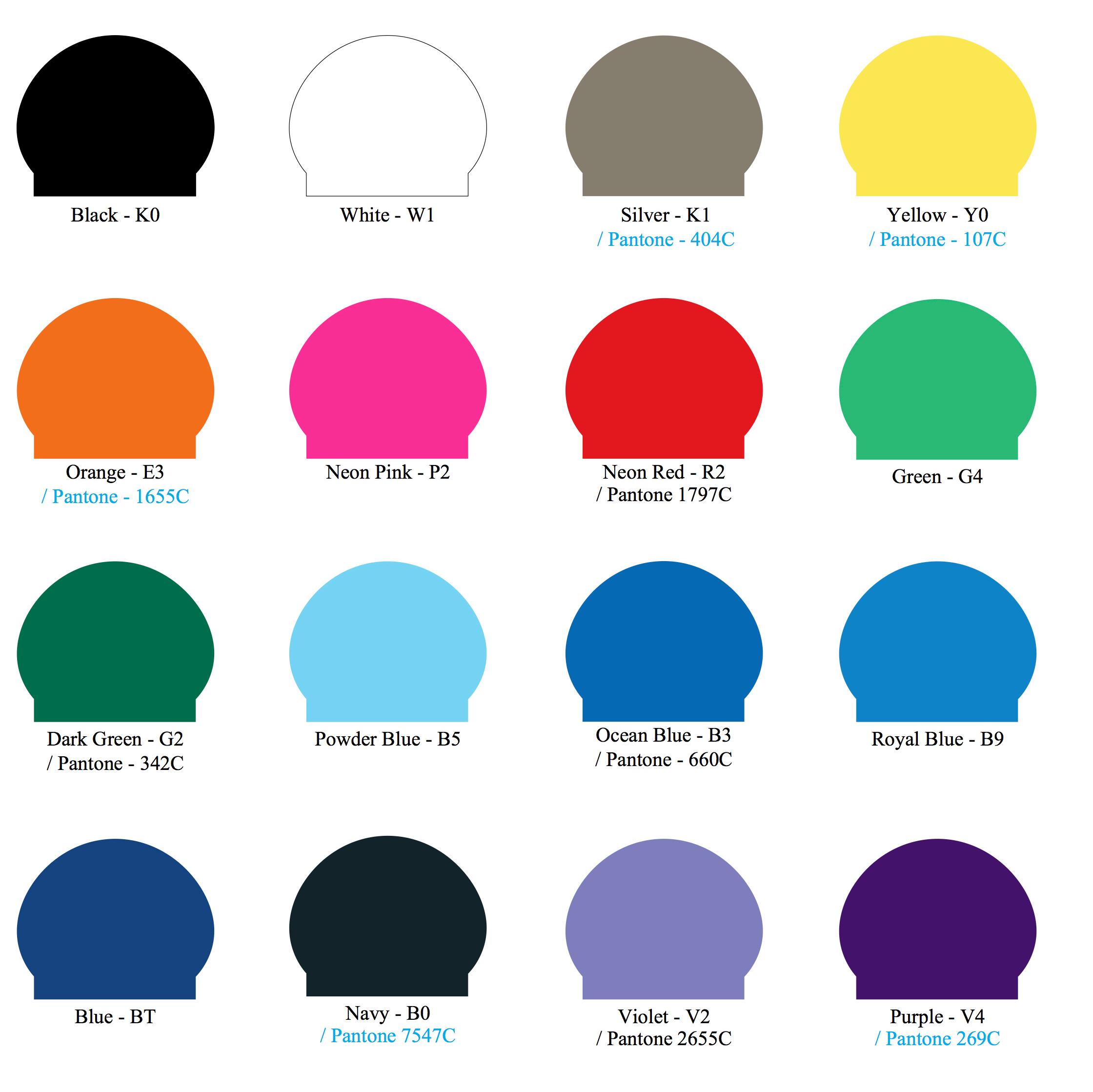 CUSTOM SILICONE CAP: COLOR CHART