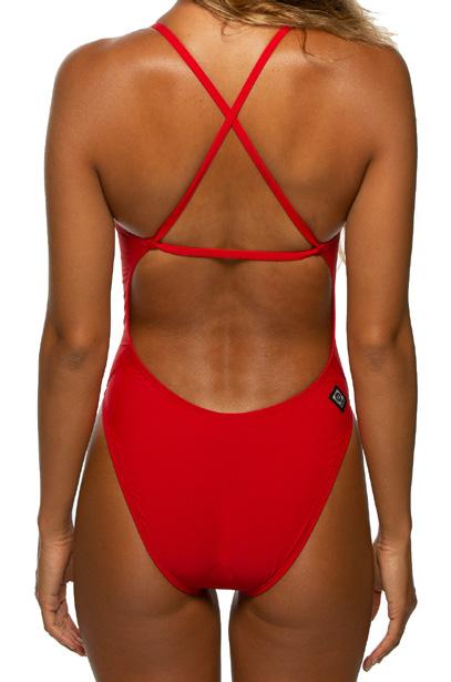 The Perry is a non-adjustable swim onesie that features contrasting stitching and binding for an athletic look. The contemporary design includes two overthe-shoulder straps that criss-cross along the back and transition into a cut-out detail along the ribcage.