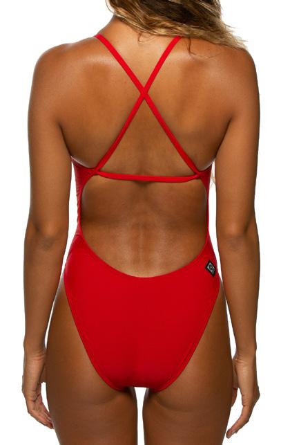 The Perry is a non-adjustable swim onesie that features contrasting stitching and binding for an athletic look. The contemporary design includes two over-theshoulder straps that criss-cross along the back and transition into a cut-out detail along the ribcage.