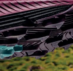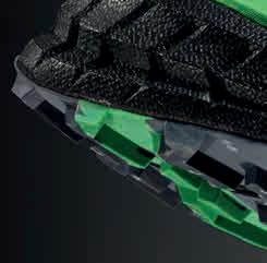 La suela de la TR-8 cuenta con un taqueado de 4,2mm, especialmente diseñado para proporcionar un agarre excepcional en terrenos poco porosos como piedra o terrenos húmedos. La profundidad de los tacos asegura una tracción firme y la mayor superficie de contacto nos brinda mayor adherencia en superficies resbaladizas. Además el compuesto Durability de alta resistencia garantiza una durabilidad prolongada.