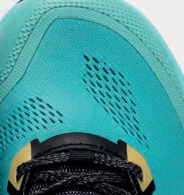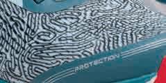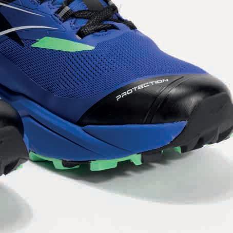 Sistema compuesto por distintas piezas de TPU situadas en puntos claves de la zapatilla, como la puntera o el puente, protege de los golpes contra rocas, raíces y otros obstáculos del terreno. Esta tecnología no solo protege el pie de impactos no deseados, sino que también refuerza la zapatilla, evitando desgarros y prolongando su durabilidad en terrenos exigentes.