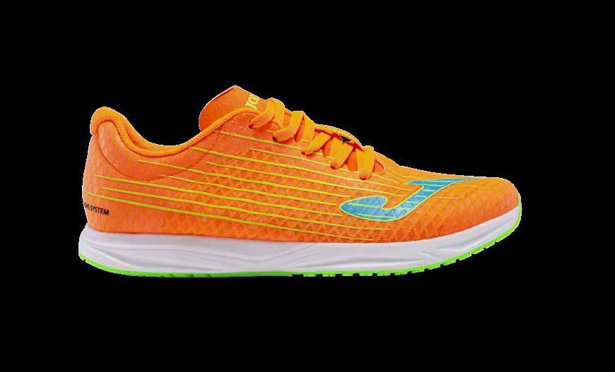 Men's running shoes. Tested in the best professional athletes. This shoe is perfect for professional runners with an excellent technique, adequate muscle work and foot-step control, so they do not need excessive cushioning or direction of the foot-step. Recommended for long distance competitions or marathons. Joma has made an e ort to achieve maximum ventilation through the improved VTS system. Thanks to the orientation of the mesh pattern, an internal flow of air is created throughout the shoe, from the toe to the rear, ventilating the foot with each stride.
