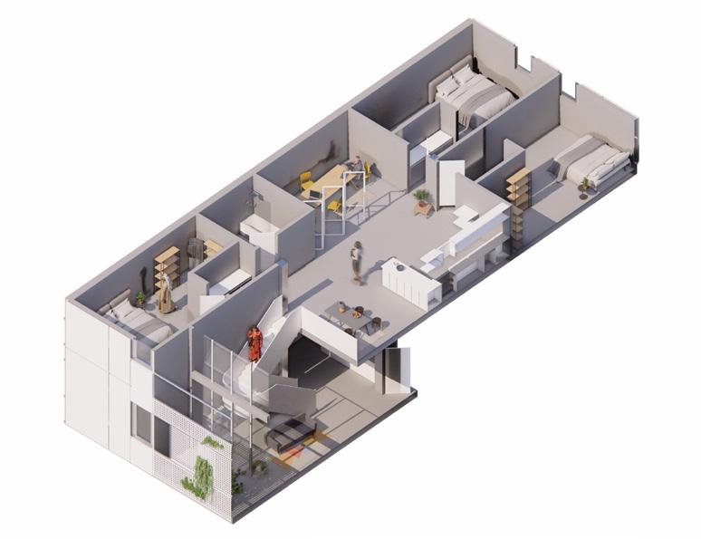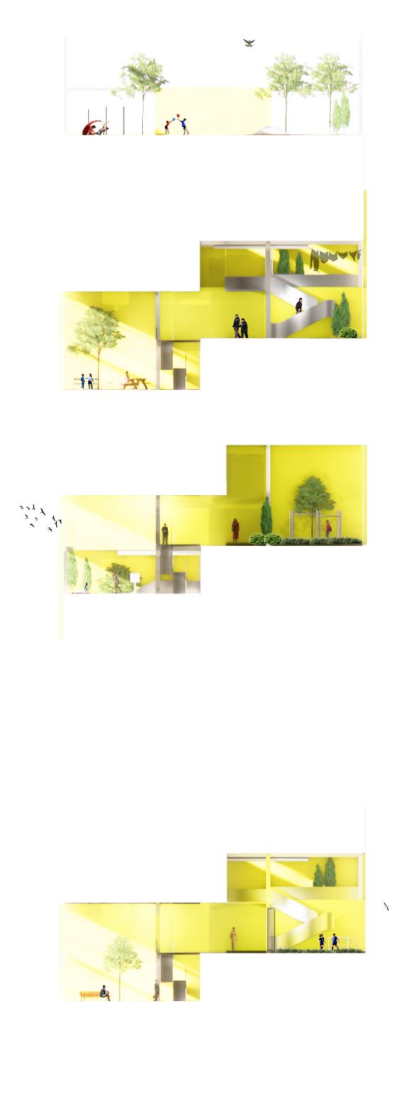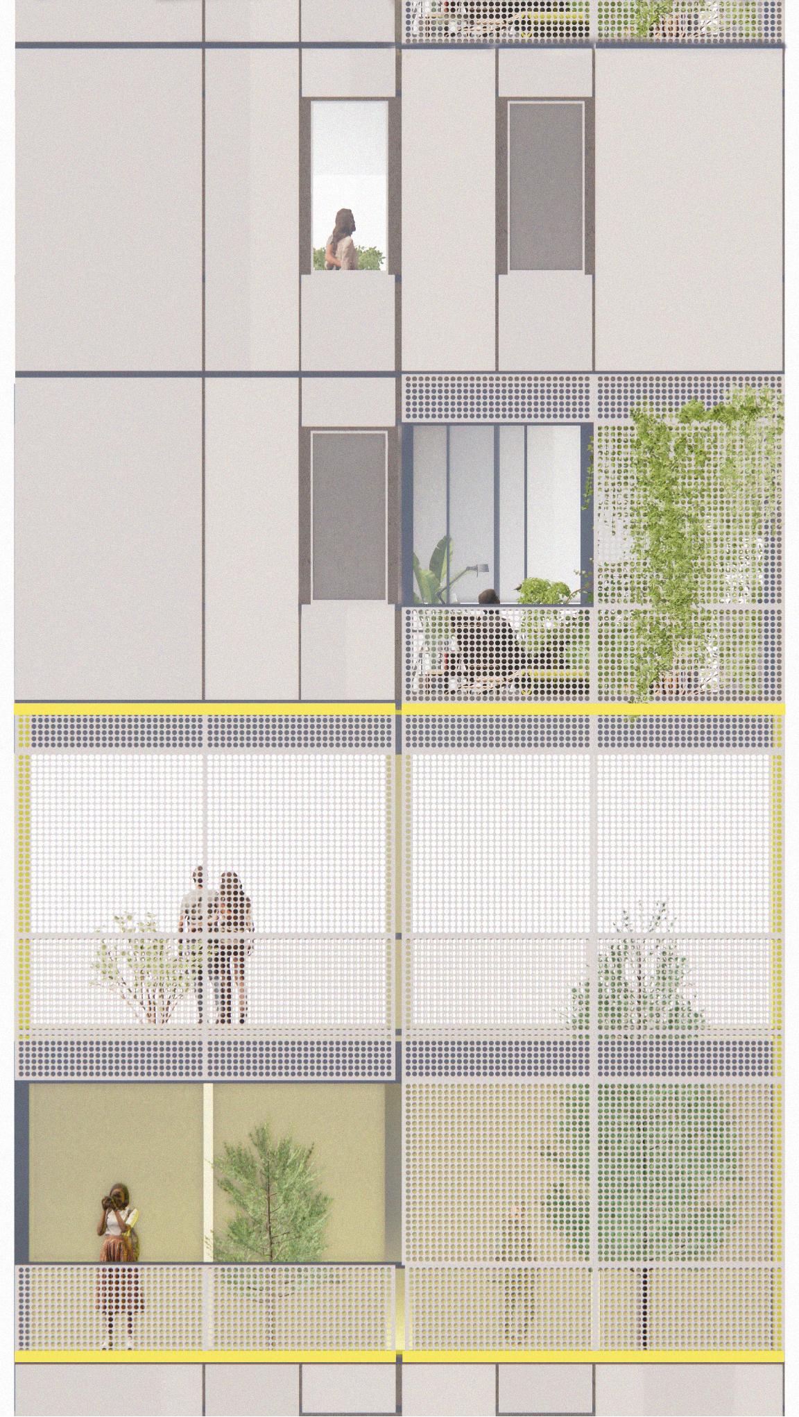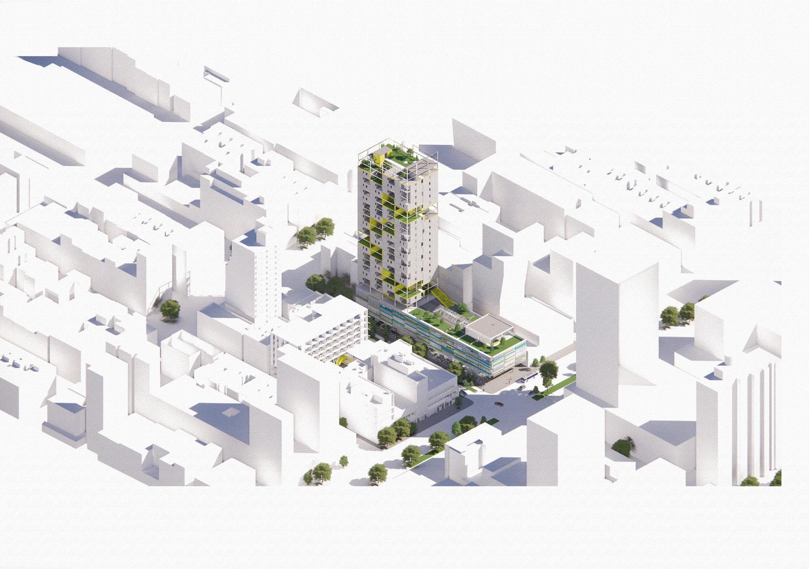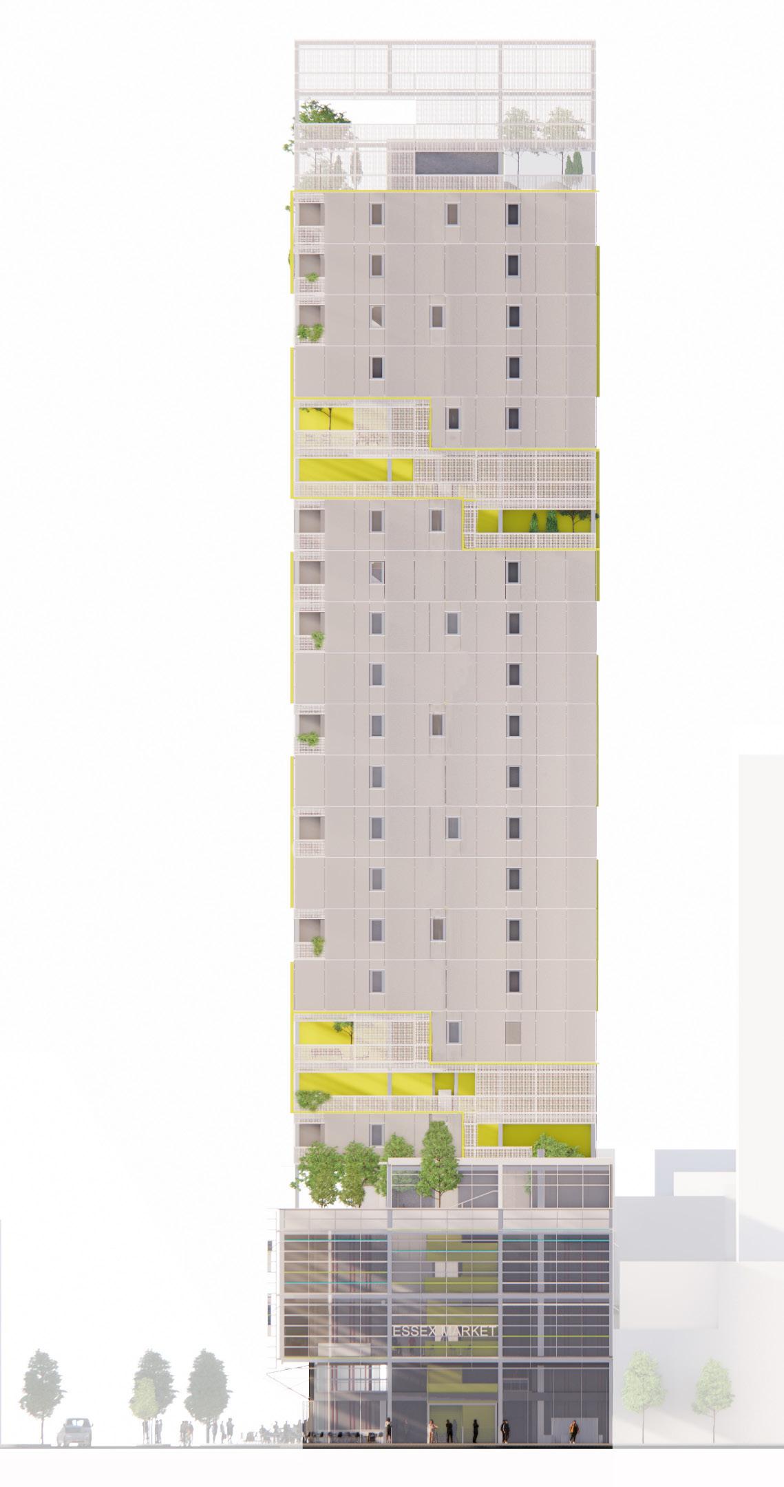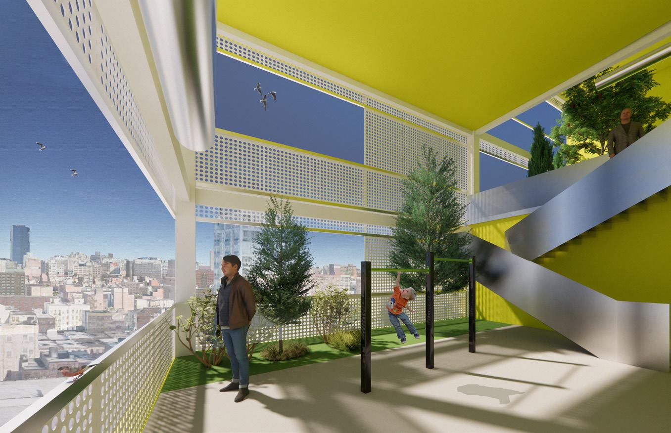 Address the basic needs for both immigrants and the Lower East Side, starting with housing. The approach to housing will not be traditional, but sensitive to concepts such as privacy, needs and wellness. Outdoor spaces not only enable lifestyles that prioritize health, but create opportunities for engaging in activity with others. These integral spaces form a vertical commons, similar to a street but in form all too familiar to New York - the tower.