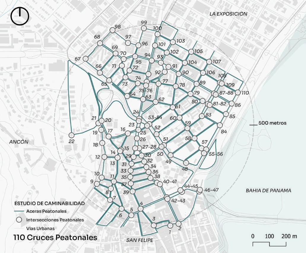 La metodología de esta investigación se concentra en tres aportaciones. Primero, el análisis de la evolución del planeamiento en las cercanías de las estaciones del metro y en ciudad de Panamá. Segundo, un análisis de las condiciones actuales de caminabilidad alrededor de tres estaciones del metro de la línea uno de Panamá mediante cuatro indicadores propuestos por el Institute for Transportation and Development Policy Pedestrians First en el documento “Tools For a Walkable City”. Tercero, una encuesta colectiva sobre la percepción ciudadana en relación a la caminabilidad.
