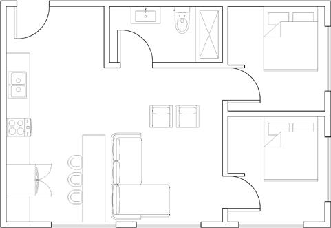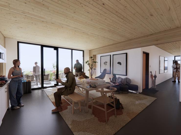 This project is structured around two elements: housing and communal spaces. The residential portion of this project includes a mix of 1-bedroom apartments and 2- to 3-bedroom homes, designed to support a range of living needs. The apartments provide options for individuals or couples, while the larger homes accommodate families or those seeking more space. This variety allows for flexibility and long-term residency, enabling residents to transition within the community as their needs evolve. The integration of communal spaces further strengthens connections among neighbors, fostering a balanced environment of private living and shared experiences.
