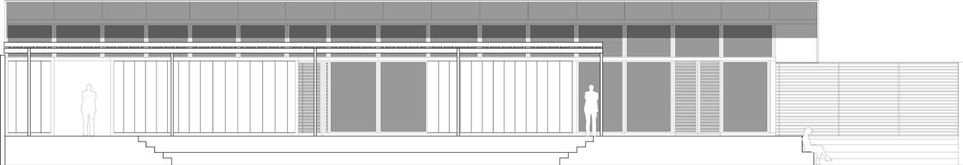 The center of the site is carved out, creating functional and occupiable spaces where occupants can eat and relax. The location is important because it allows school staff to have views of students.
