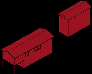 To create contrast on the site and minimize visual distractions, the northwest mass is shifted north. This adjustment helps frame views from opposing thresholds. Shed roofs are added to provide covered walkways.