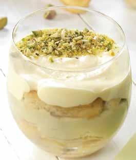 5: Cover the bottom of each glass with a layer of Vicenzovo Ladyfingers, continue with a layer of pistachio cream, add another layer of Vicenzovo Ladyfingers and finish with the mascarpone cheese cream. Finally, sprinkle with chopped pistachios.