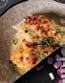 4. Top with micro herbs, mango salsa to taste and second slice.