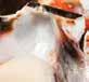 2. Once the skin is removed, score the fat lightly across the ham on a diagonal about 2 cm apart, then back the other way to form diamond shapes, being careful not to cut too deep into the skin.