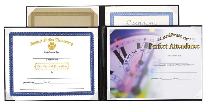 Like our stock covers, each is padded with a lightly textured leatherette surface. Also available are black and navy two-sided covers in a horizontal or vertical orientation. The standard 9" x 11½" cover holds one 8½" x 11" document vertically or horizontally. The smaller 6¼" x 8½" version holds a 6" x 8" document. Extra Large diploma covers are 11½" x 14½" and hold an 11" x 14" document.