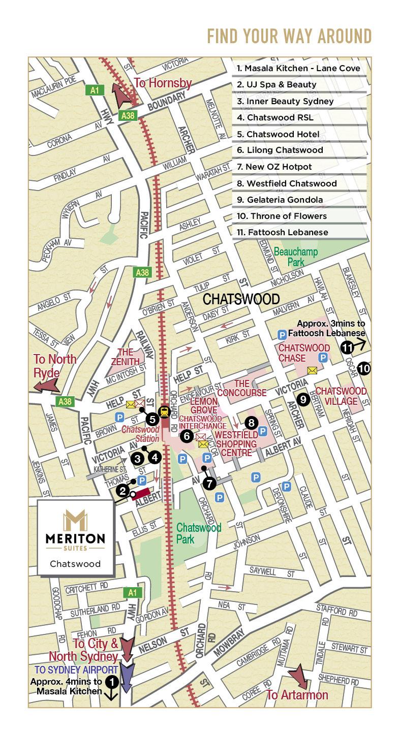 Only a 2 minute walk from Meriton Suites Chatswood.