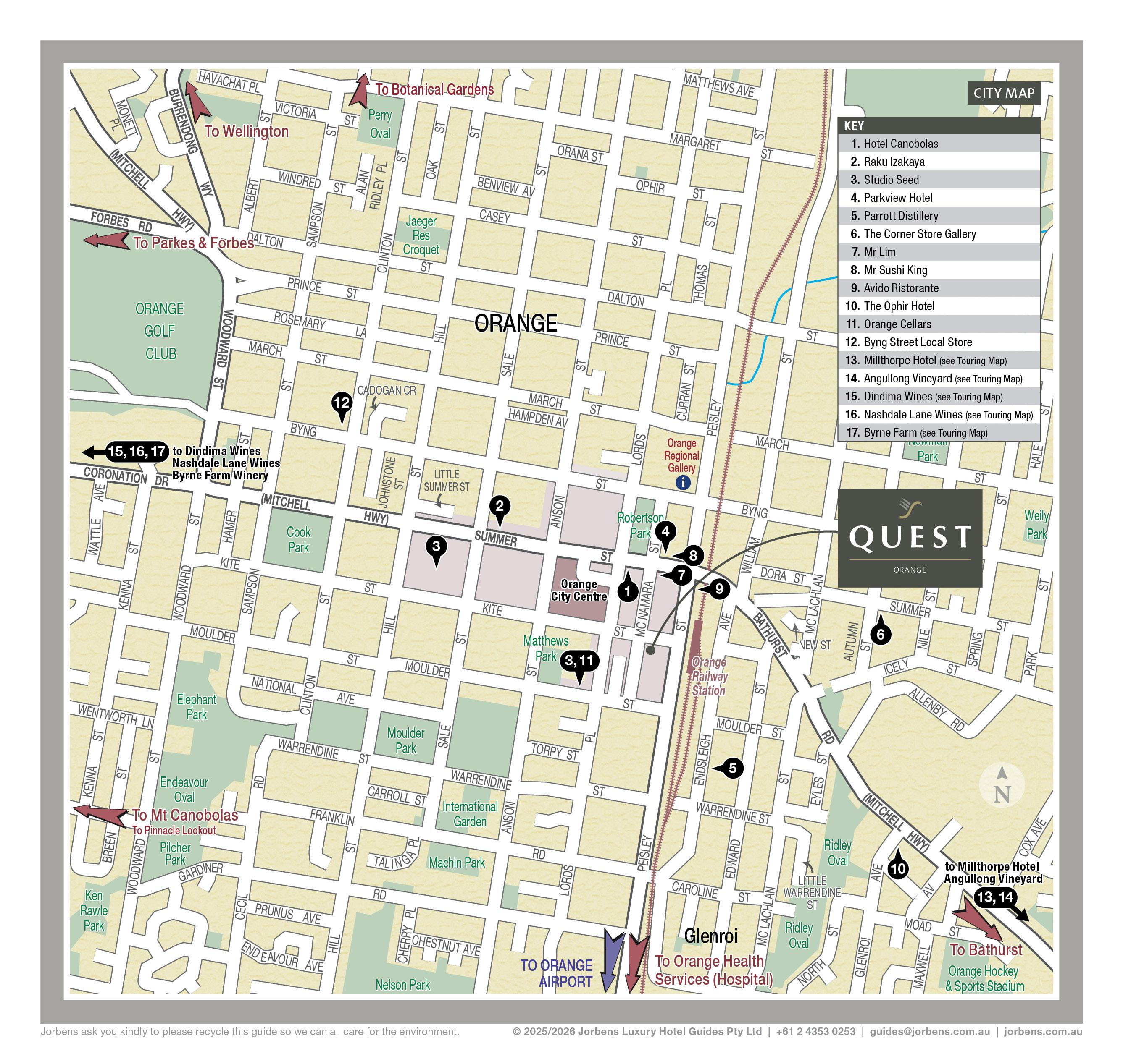 As you settle in, we hope you enjoy exploring everything Orange has to offer. Wander our tree-lined streets, visit our cellar doors, and don’t forget to fill your esky with the best local wine, cheese, and produce on your way home.