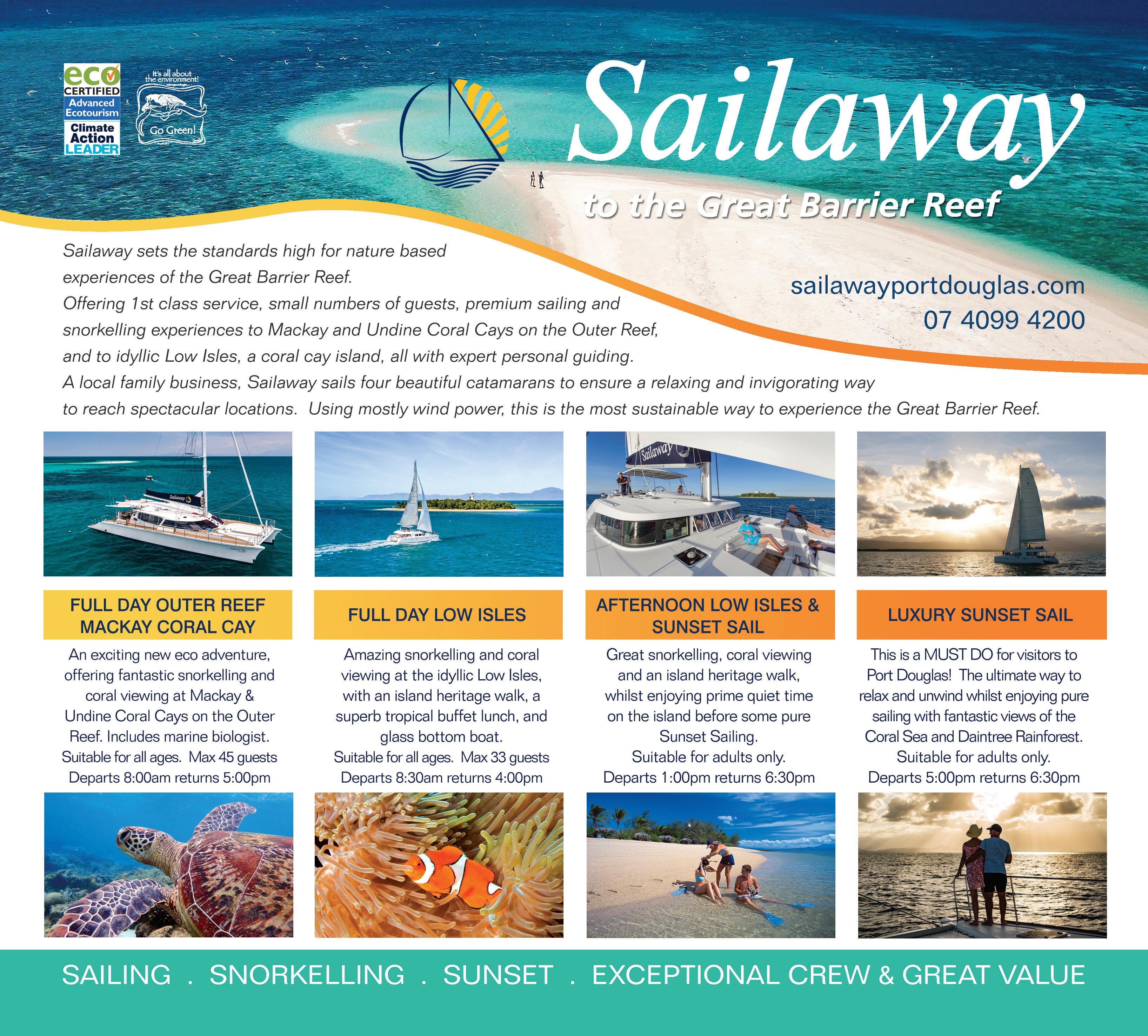 Daily departures Port Douglas Marina, Book online or call Quicksilver on (07) 4087 2100.
