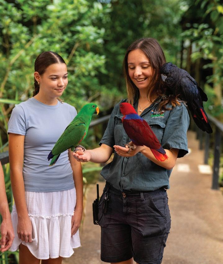‘Hartley’s Breakfast with the Koalas’ 8.30am to 9.30am daily. Enjoy a hot Aussie Breakfast in the company of our cute Koala. ‘Zootastic 5’ at 9.30am and 1.30pm daily, allows VIP guests to pat, hold and/or feed native and exotic animals including wombats, koalas and cassowaries; bonus Koala holding photo. Or pole feed a Hartley’s Giant Saltwater Croc with Keeper guidance in our ‘Big Croc Feed’.