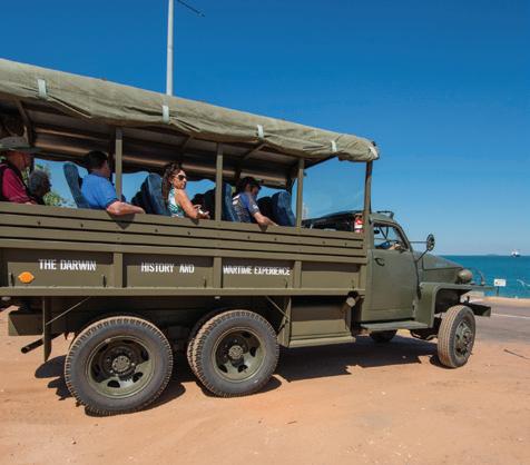 Discover Darwinās fascinating history while travelling in a WW2 army vehicle. Tours AprāOct. Duration approx. 90mins. Departs from Tourist Information Centre, Cnr Smith St and Bennett Sts, Darwin T 0455 998 346