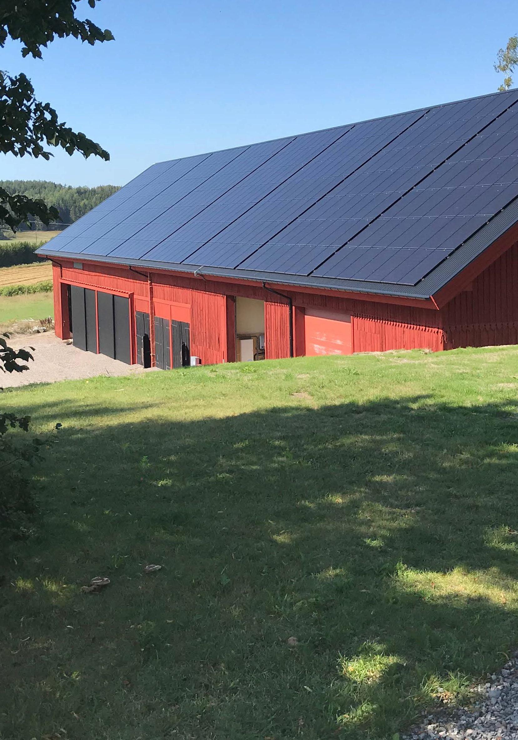 – Det är jättebra att man kan sätta solcellerna på ett sätt så de inte tar bort mark från produktion av vare sig skog eller grödor I mitt fall har jag satt dem på en berghäll bakom huset Naturligtvis producerar anläggningen sommartid mer än v a d h a n k o n s u m e r a r o c h p å