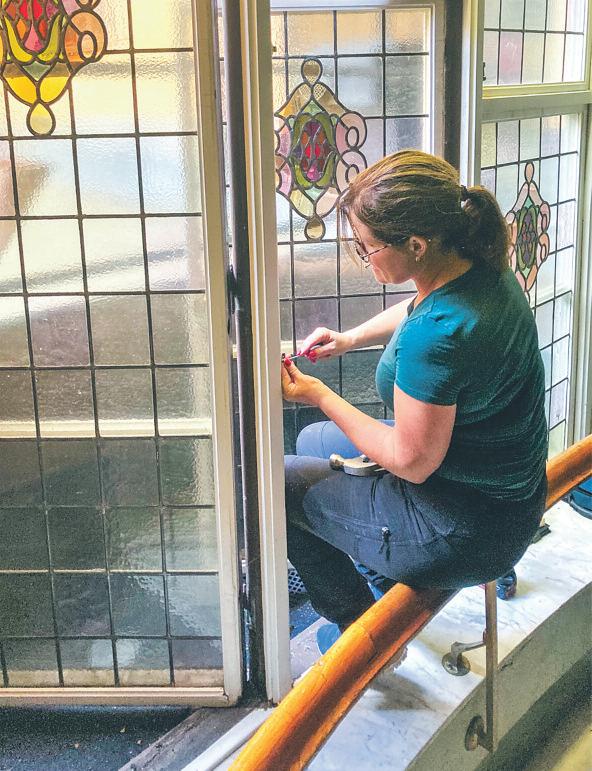 det gäller fönsterrenovering är det en hantverkstradition som till stor del förs vidare genom personliga kontakter – Det finns inte så mycket u t b i l d n i n g a r D e t ä r e t t s k r å som innefattar måleri, snickeri, metallarbete och glasmäst e r i D e t ä r f y r a o l i k a h a n tv e r k s g r e n a r s o m ä r m e d , s å m a n m å s t e v a r a d u k t i g p å många moment Butiken stod för ungefär en t r e d j e d e l a v v e r k s a m h e t e n under 2021 Det är en mötesp l a t s , e n m a r k n a d s f ö r i n g sp l a t s o c h a n s i k t e t u t å t D ä r k a n k u n d e r n a f å r å d o c h h a n d l a d e p r o d u k t e r s o m