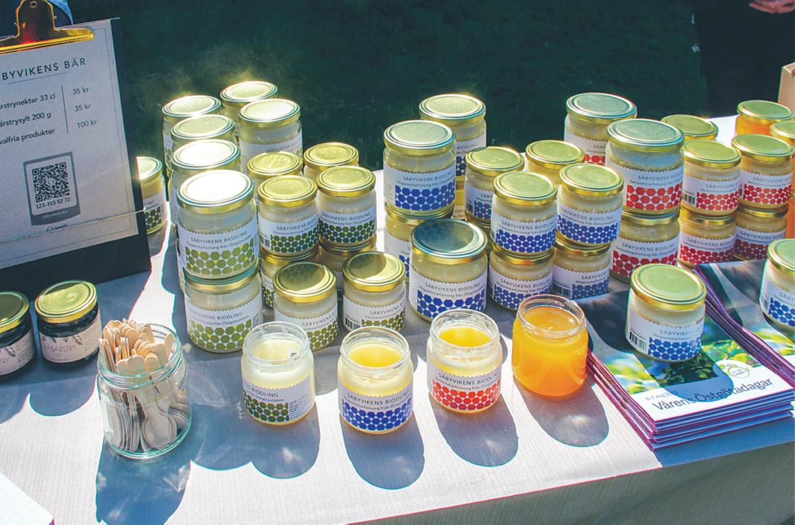 LANDSBYGD Vid en smal grusväg en kilometer bortom Örberga k y r k a f i n n s S ä b y v i k e n s B i o d l i n g G å r d e n d e l t a r f ö r f ö r s t a g å n g e n i Östgötadagarna Annie Ingemansson och Björn Granstrand har duk a t m e d b i k u p a o c h h o n u n g s b u rkar Annie demonstrerar just kupan och berättar om bin och deras samhällen för några intresserade barn G e n o m e n g l a s v ä g g g å r d e t a t t s e hur bina lever i kupan Annie visar och berättar med stor inlevelse om b i n a s l i v o c h h u r h o n u n g b l i r t i l l B i n h a r m å n g a u p p g i f t e r D e s k a städa, vakta, putsa nykläckt och, inte minst viktigt, pollinera SISTA SIDAN