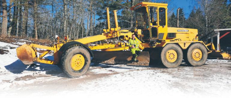 Kantskärning och väghyvling med moderna maskiner. Grus och dammbindning.