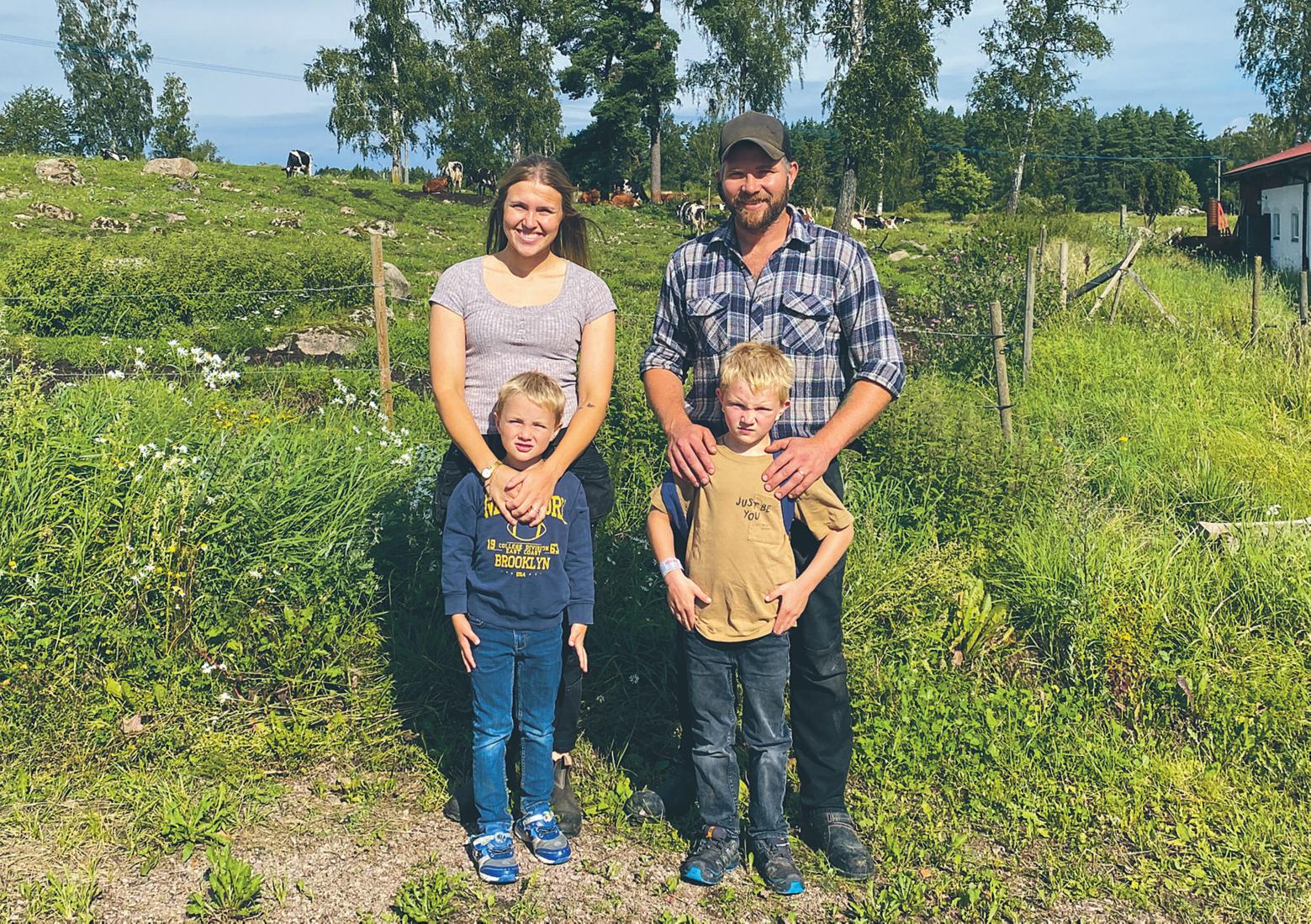 Nya mjölkbönder på Pålsbo gård Elin och Adrian Bergman med Adrians söner Colin och Loki