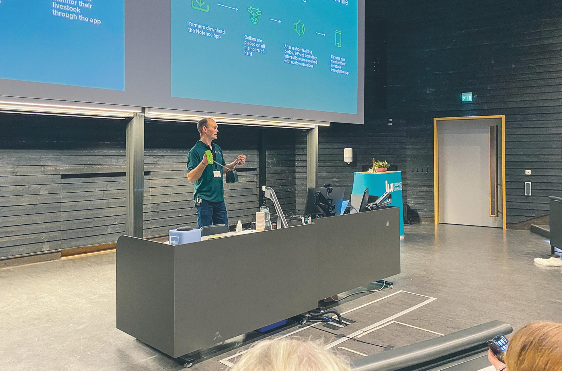 J o n a s H e l l b e r g , f ö r s ä l jningschef hos Nepab, var med på ett förinspelat föredrag som visades på storskärm Han ber ä t t a d e o m h u r d e t f u n g e r a r m e d s å k a l l a d ö - d r i f t o c h b alanstjänster Jordbrukaren har nyligen tagit upp det här ämnet, ö-drift Det ligger i tiden och är ett av sätten att öka gårdens robusthet och beredskap