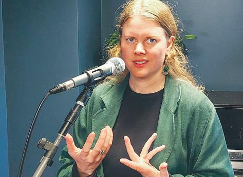 Linda Ivarsson från Grebo berättade om sina farföräldrars umbäranden i koncentrationslägret Vapniarka Även Lindas pappa Petru Eles fanns på plats i Åtvidabergs bibliotek under minnesdagen
