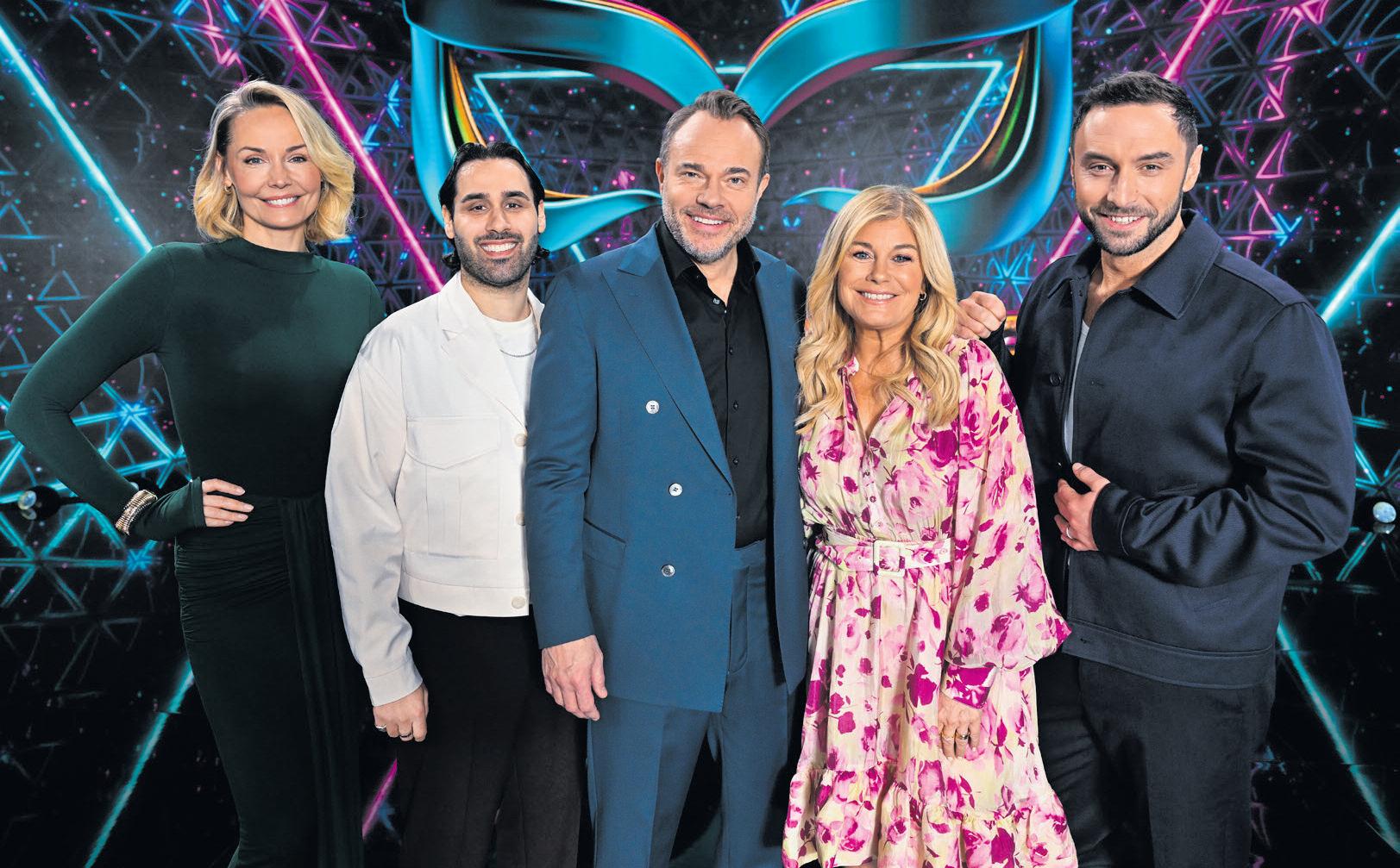 Carina Berg och Behrouz Badreh gör Pernilla Wahlgren och Måns Zelmerlöw sällskap i ”Masked singer”-panelen.