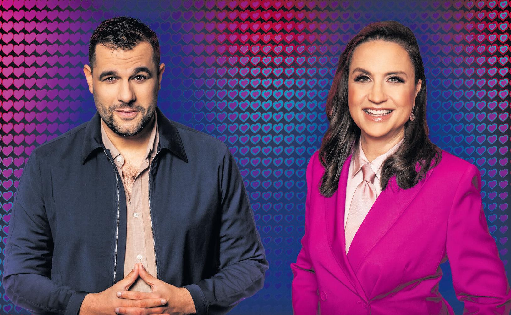 Edward af Sillén och Petra Mede guidar tittarna genom årets nal från kommentatorsbåset i Basel.
