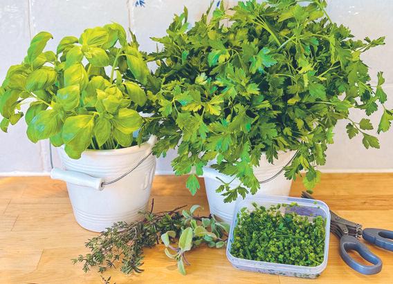 Två örter som jag endast använder färska från krukor i köksfönstret, på grund av smaken och konsistensen, är