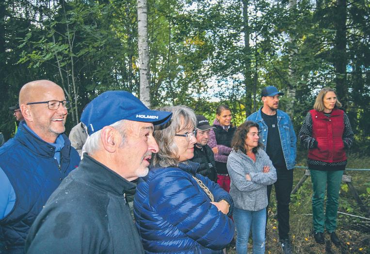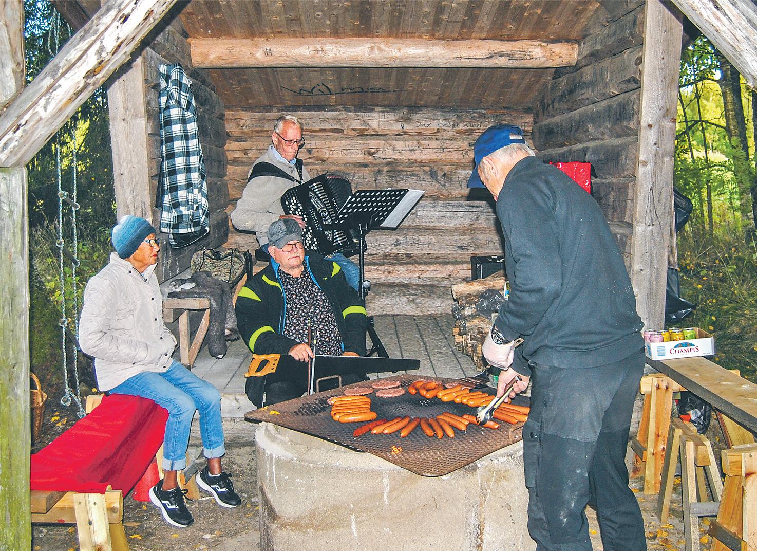 F r e d a g e n 1 6 s e p t e m b e r b j ö d f ö r e n i n g e n i n a l l a d e som arbetat med grillplatsen M a r s c h a l l e r v i s a d e v ä g e n g e n o m s k o g e n o c h v ä l f r a m me samlades sällskapet utan för det blågula bandet